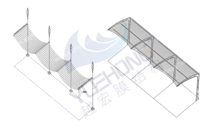 越宏膜結(jié)構(gòu)廠家的膜結(jié)構(gòu)車棚是由鋼結(jié)構(gòu)和膜材組成,分別有張拉式膜結(jié)構(gòu)、索膜結(jié)構(gòu)、骨架式膜結(jié)構(gòu)、空間結(jié)構(gòu)式等供選擇,根據(jù)不同場景進(jìn)行設(shè)計出個性化膜結(jié)構(gòu)。